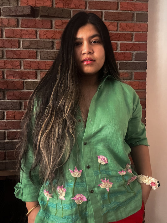 Alpona - Pure Cotton Hand Embroider Crop Shirt