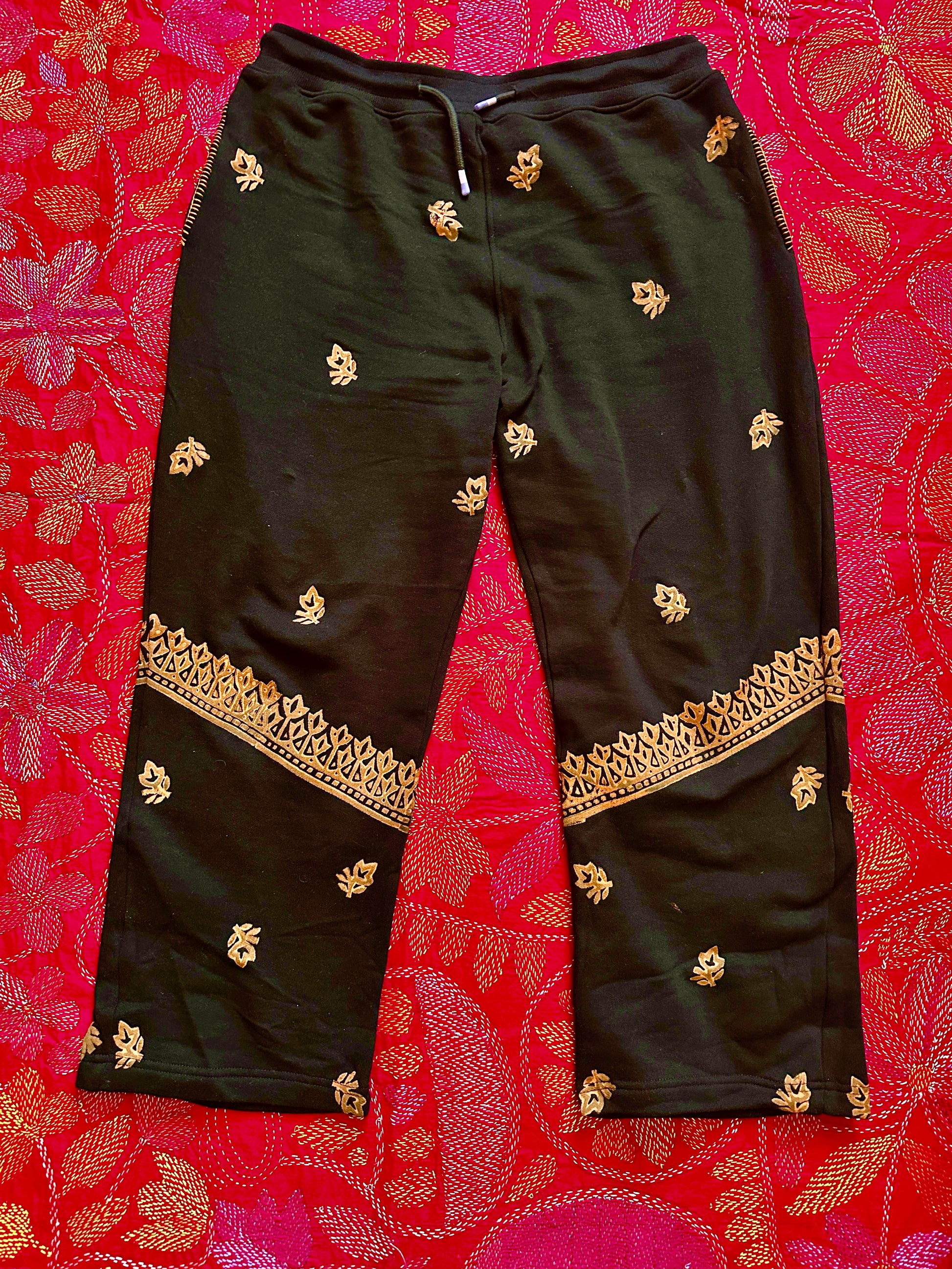 Bangladeshi hand embroidery is a centuries-old craft passed down through generations. This sweatpants honors that legacy while reimagining it for today’s South Asian streetwear culture.