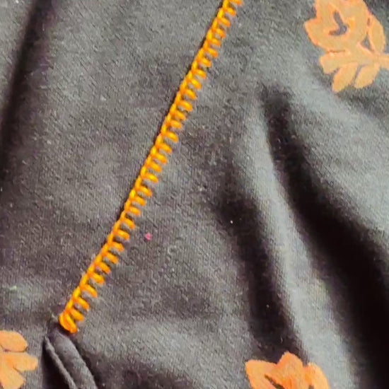 This hand embroidered and hand block printed hoodie is a celebration of Bangladeshi craftsmanship and slow fashion.