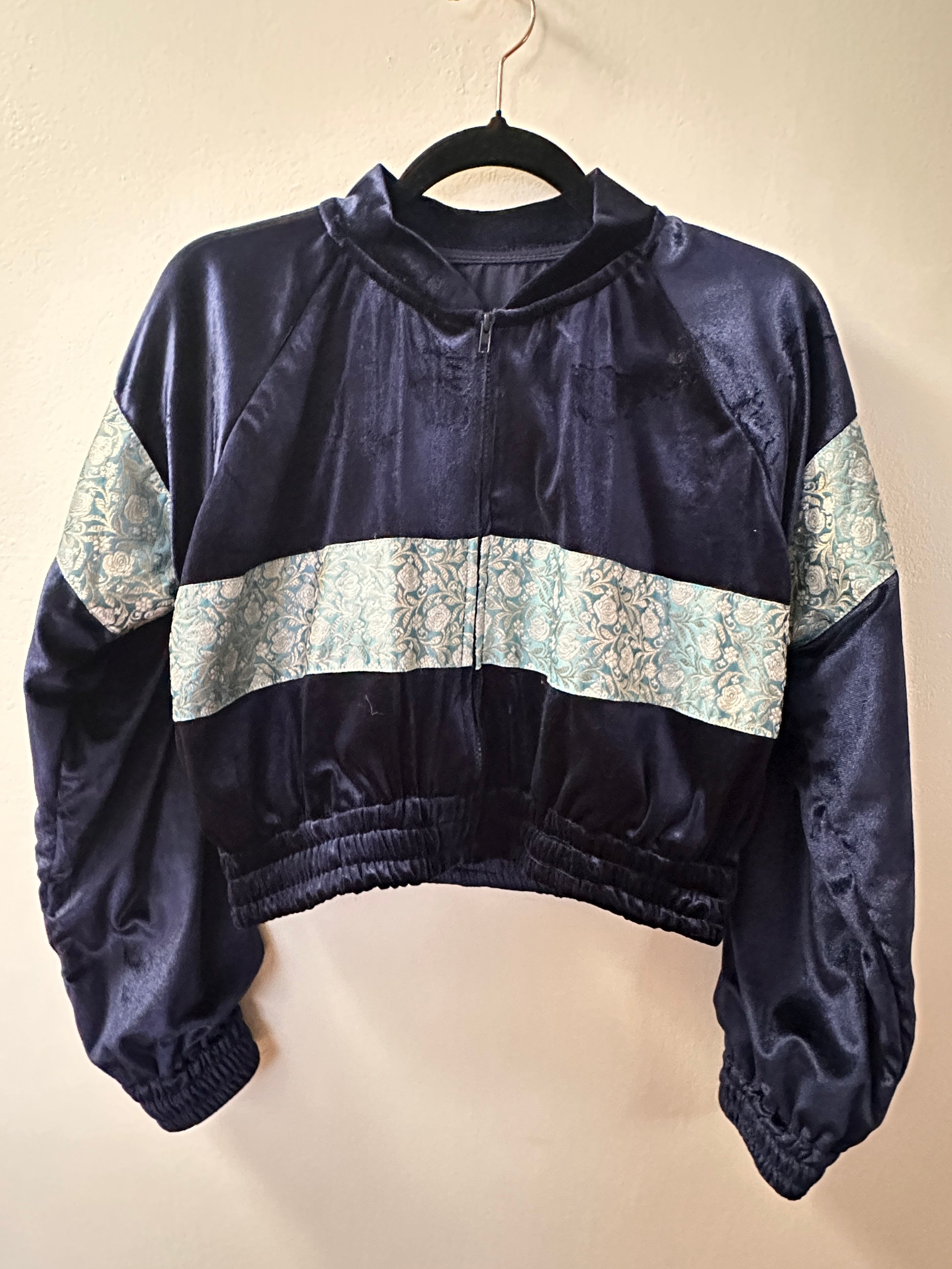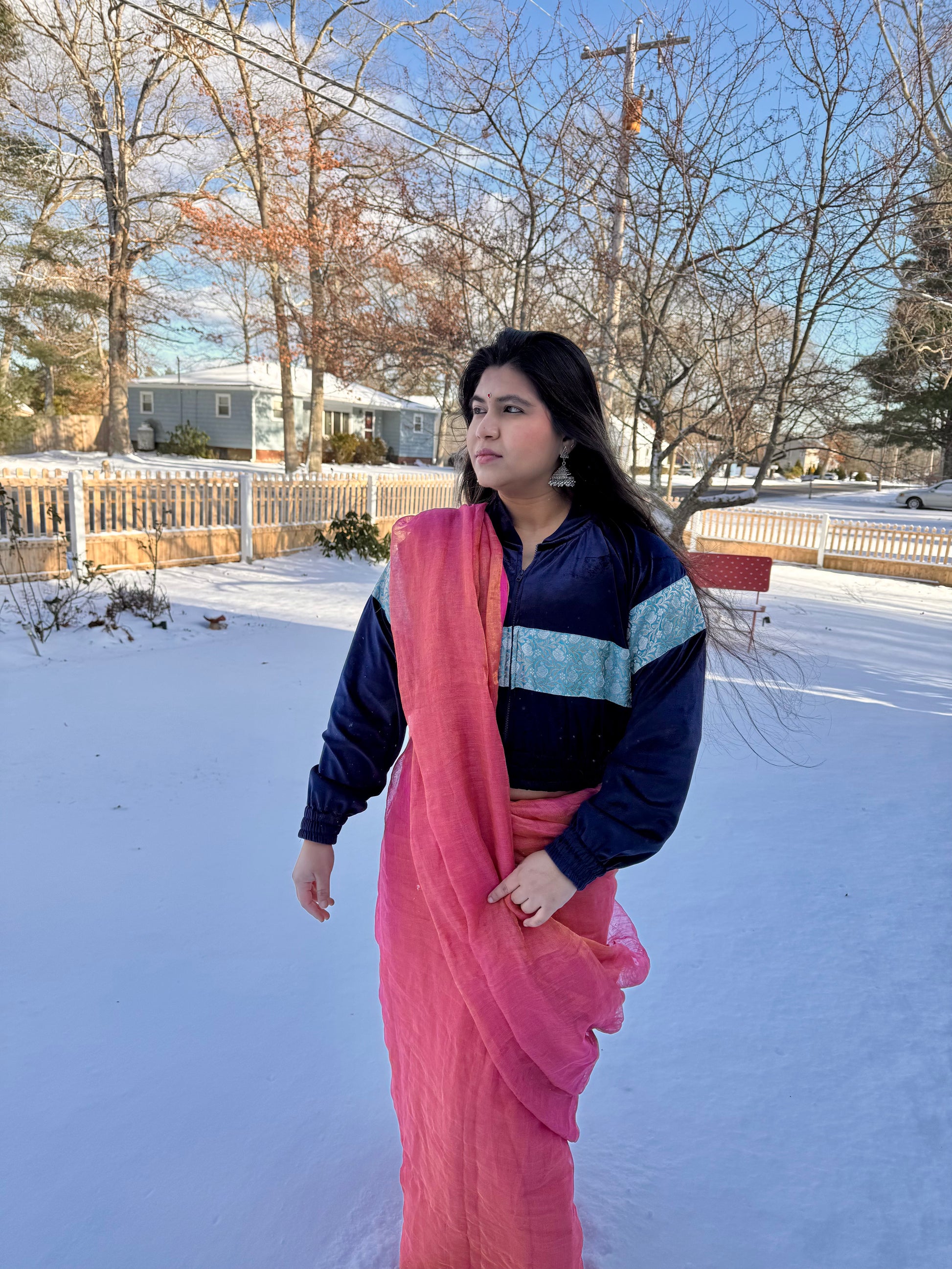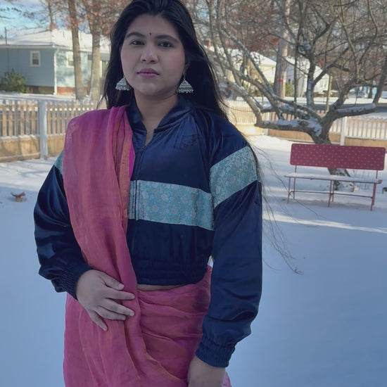 Inspiration for this bomber jacket came from my mother's wedding Katan Saare - the intricate details, vibrant hues, and craftsmanship left me stunned when I wore it at my pre-wedding ceremony. I decided to create something anyone can wear, carrying the craftsmanship and values with a touch of the modern world.