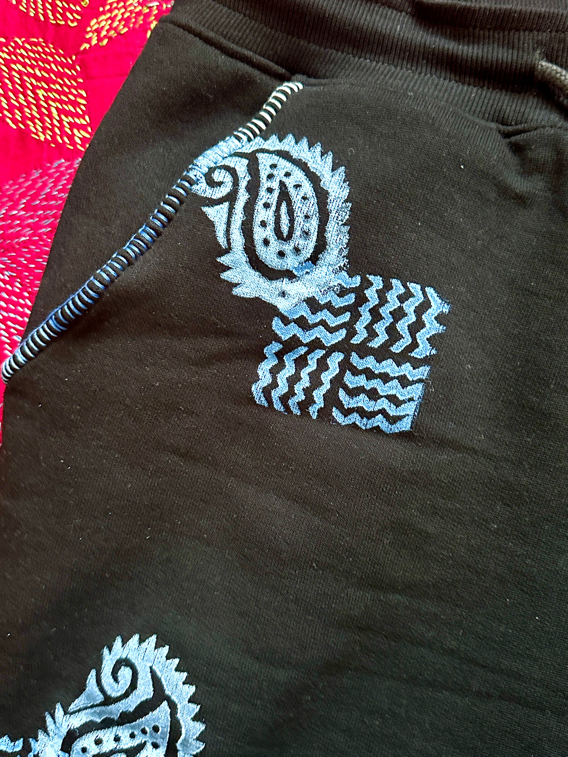 This hand embroidered and hand block printed Sweatpants is a celebration of Bangladeshi craftsmanship and slow fashion.